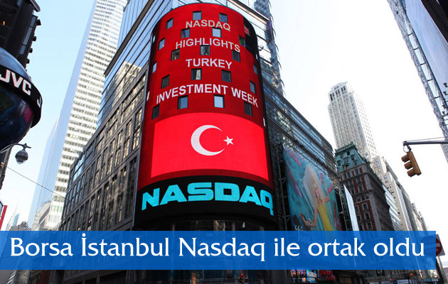 Amerikan devi Nasdaq, Borsa İstanbul'un yeni ortağı oldu. Anlaşmayı Nasdaq OMX grubu ünlü Times meydanından duyurdu. Nihai imza ise Eylül ayında atılacak. 3 Nisan'da kurulan Borsa İstanbul A.Ş.'nin sermayesi 423 milyon TL olarak açıklanmıştı. Bir süredir birçok kurumla ortaklık görüşmeleri yürüten Borsa İstanbul ortaklığı ABD merkezli dünya devi Nasdaq ile gerçekleşti. Dünyada 24 borsa yöneten Nasdaq Borsa İstanbul'a ortak oldu. Anlaşmayı Nasdaq New York'un ünlü Times meydanındaki dev ekrandan duyurdu ve o anın fotoğrafını servis etti. Nasdaq ayrıca 50 ülkede 70 borsaya teknoloji desteği veriyor.İlk olarak Nasdaq OMX’in kendi sitesinde duyurduğu stratejik ortaklık kapsamında iki şirket faaliyet gösterdikleri bölgede aktif işbirliği yapacaklar. Borsa İstanbul, enerji kontratları dahil tüm varlık sınıfları için Nasdaq OMX'in teknolojilerini kullanacak. Nihai imzalar Eylül ayında atılacak.